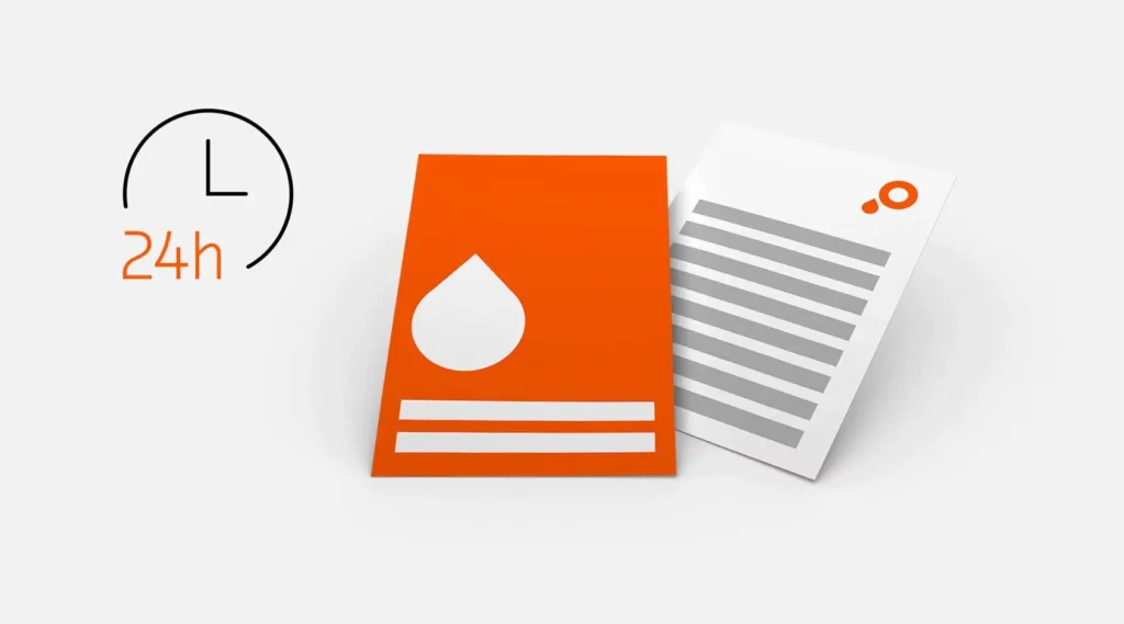 Con nuestro muestrario de papel puede examinar todos nuestros tipos y grosores de papel cómodamente en la oficina y decidir cuál le conviene más.